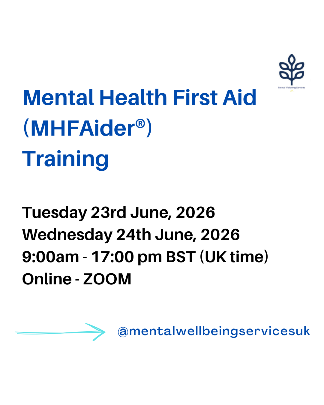 Online Mental Health First Aid (MHFAider®) 23rd and 24th June, 2026 9.00am until 5.00pm